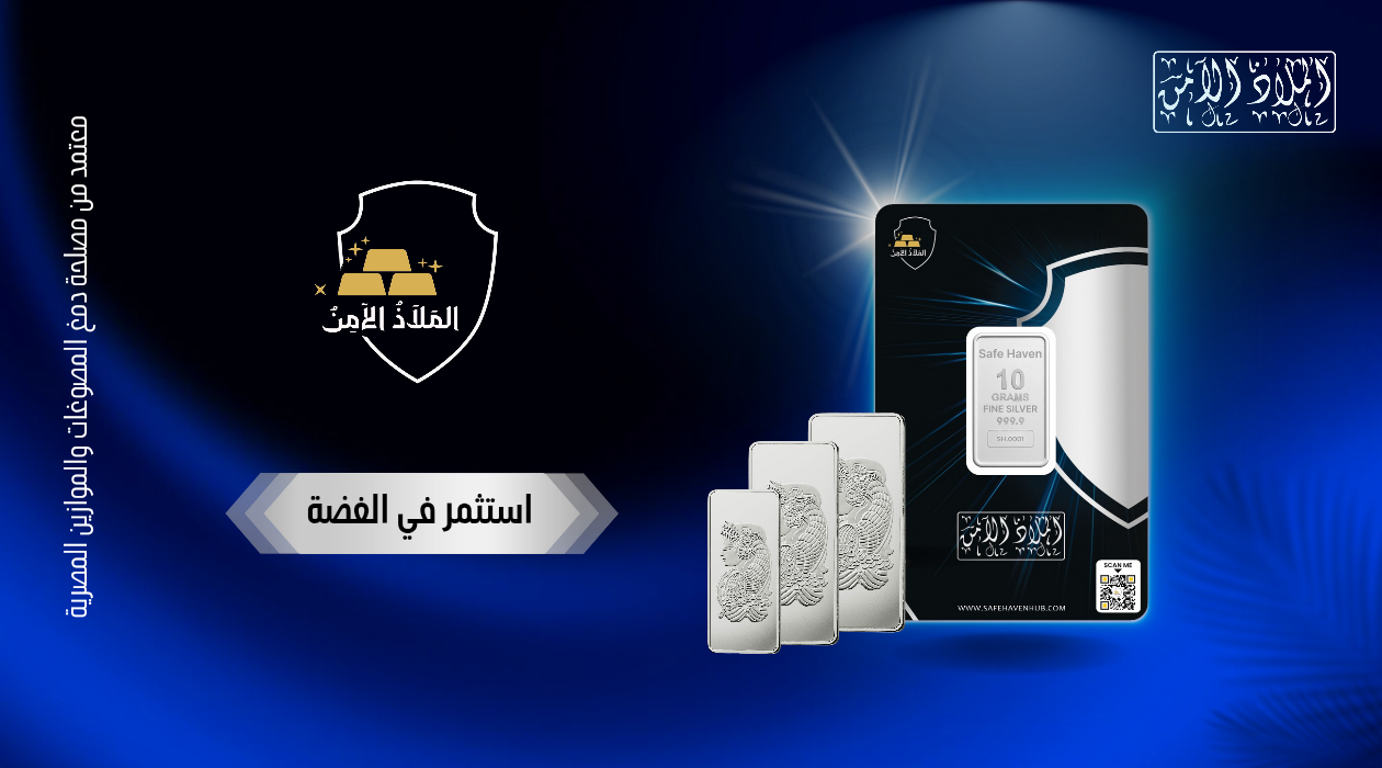 مرحبًا بك في مركز الملاذ الآمن للمعادن الثمينة – وجهتك الأولى لاقتناء أفضل منتجات الفضة الخالصة في مصر. نوفر لك تجربة تسوق موثوقة وسهلة عبر الإنترنت لاقتناء السبائك والعملات الفضية بأعلى درجات النقاء (999)، مع تحديثات يومية لأسعار الفضة وخدمة توصيل مضمونة إلى باب منزلك, جميع منتجاتنا معتمدة من مصلحة الدمغ والموازين المصرية ومرفقة بفاتورة معتمدة لإثبات الملكية .